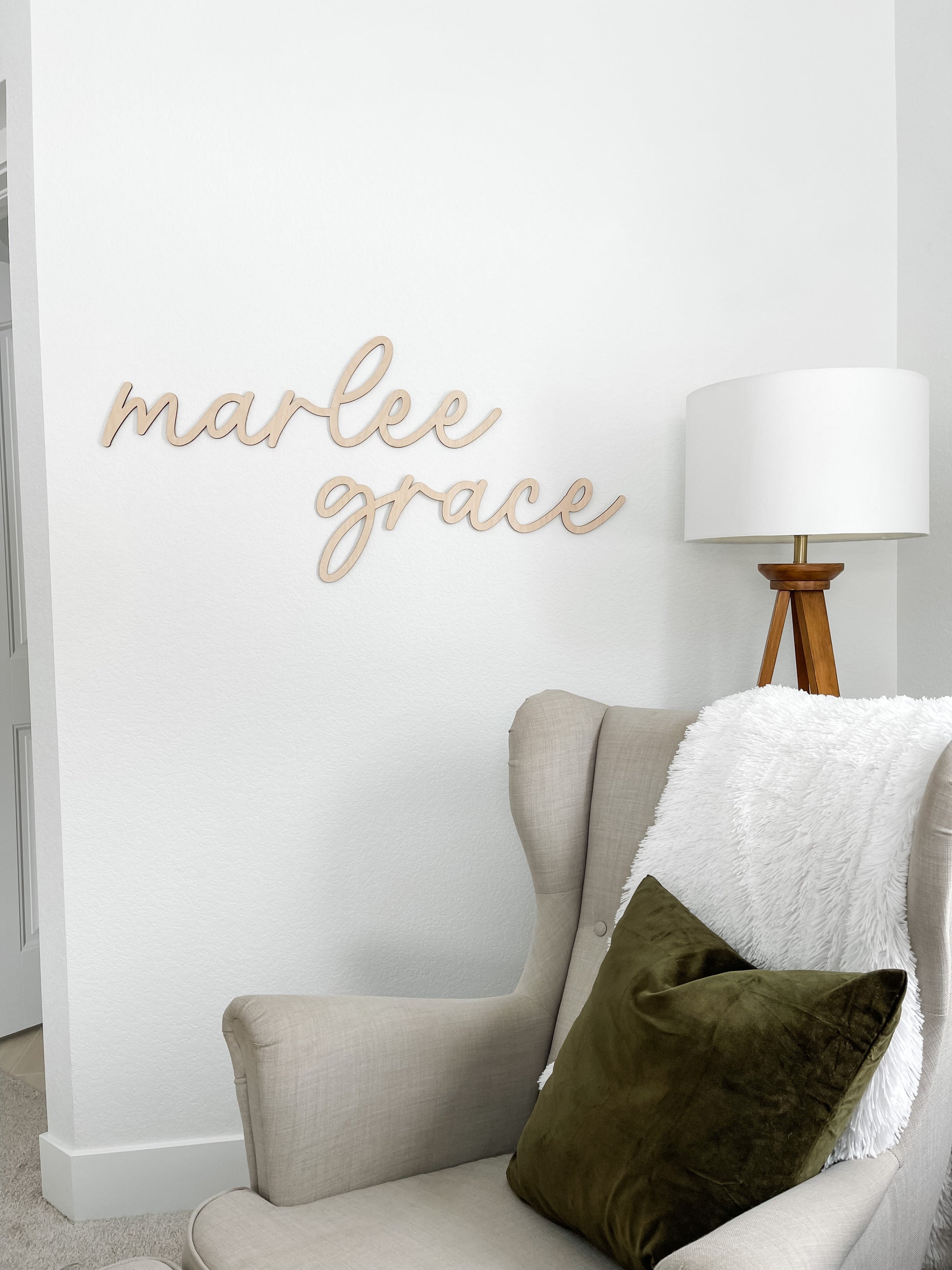 -This listing comes with both a first and middle name! We measure our signs by width, when stacked as seen in the listing photo, with both lines included in the width measurement.