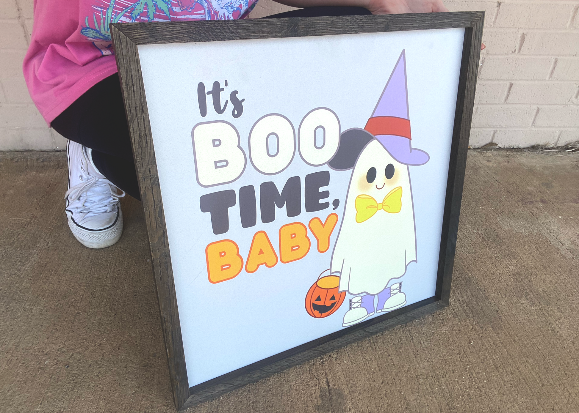 -These signs have ¼" letters painted to your selected color, attached to a wood backer printed in the pattern or color of your choice, and finished with an attached frame made with White Oak wood