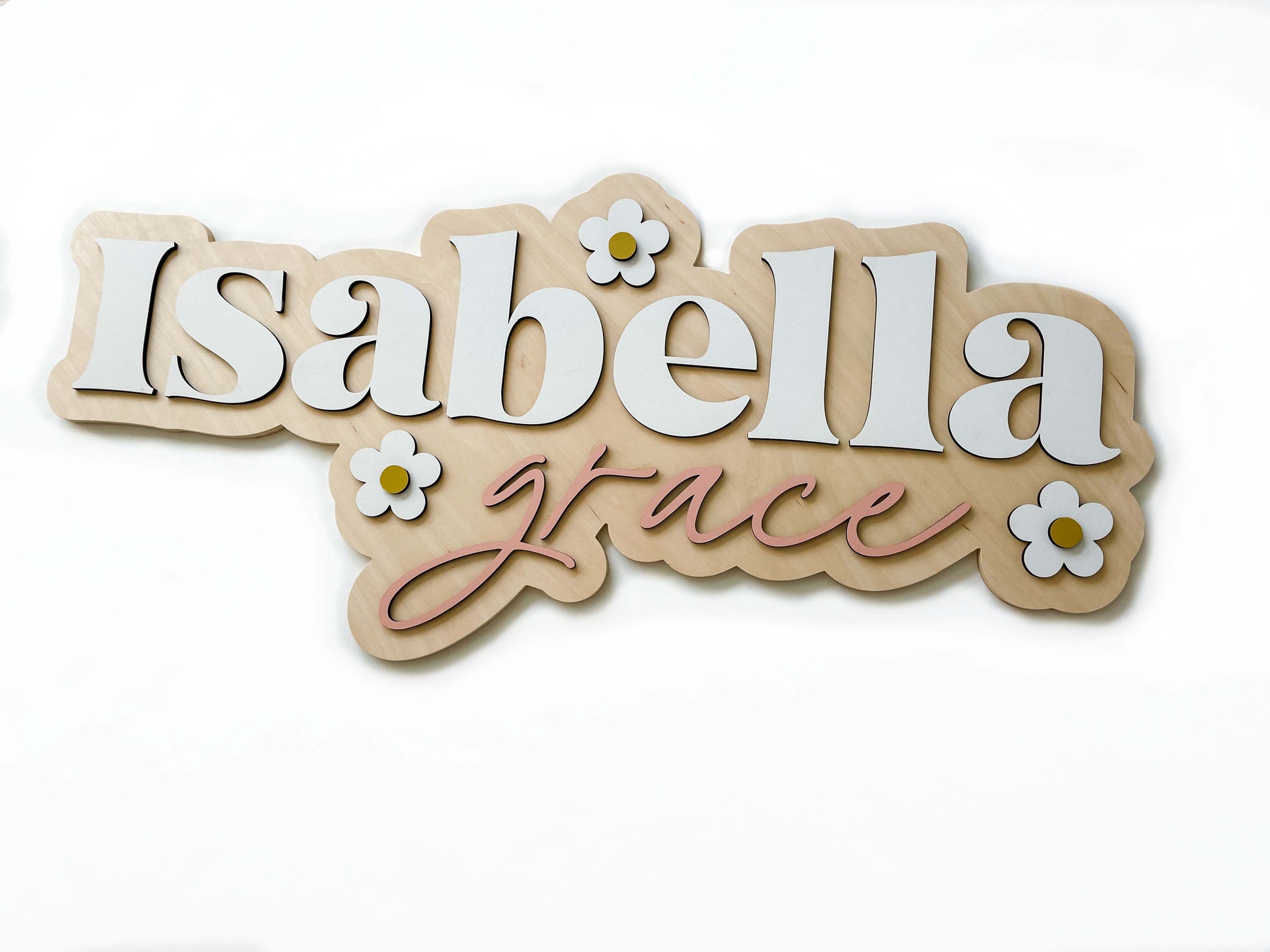 - The height of your sign will vary depending on the name and font picked. Name signs with a lot of letters will not be as tall as names with only a few letters. Please reach out if you would like to know the height of your sign!
